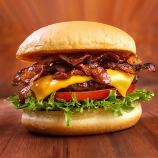 Pão, hambúrguer, presunto, mussarela, bacon, ovo, tomate, alface e batata palha.