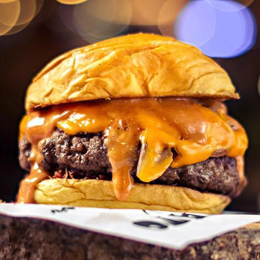 Pão, hambúrguer, mussarela, alface, tomate, ovo e batata palha.